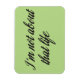 Que vous ne soyez pas d'accord avec quelque chose, que vous n'aimiez pas ce que quelqu'un fait, ou que vous ne vouliez pas faire quelque chose en général, faites-le savoir à tout le monde avec cet aimant flexi premium design typographie drôle mais élégant disant "Je ne parle pas de cette vie." Customisez cette amusante citation de texte design en ajoutant votre propre texte.