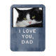 Rappelez-vous combien vous êtes aimé avec ce I Love You, Papa Custom Cat Photo Magnet. Ajoutez une photo préférée de votre ami félin ou autre animal de compagnie bien-aimé et préparez votre coeur à fondre chaque fois que vous regardez ce visage sucré. Parfait pour la maison ou le bureau, cet aimant personnalisé fait un cadeau spécial pour n'importe quel papa de chat fou. Arrière - plan gris bleu foncé avec arrière - plan photo noir. Le design est également disponible avec un arrière - plan photo blanc.