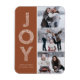 JOY Foliage Lettres en terre cuite Noël Photo Collage Magnet plat | Envoyez vos voeux de Noël avec cet aimant photo fantastique de vacances. On y retrouve le feuillage JOY, la typographie décorative et le motif festif. Personnalisez en ajoutant des noms, des messages et des photos.