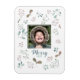 Ajoutez votre photo carrée à ce design fantaisiste de forêt hivernale rempli de branches de baies et de feuilles pour un aimant de Noël simple et rustique. Le texte au recto indique "Joyeux" avec l'année. Créées avec des aquarelles, ces branches vert pâle et ces baies roses et marron sont un mélange hivernal naturel et doux approprié pour toutes les fêtes d'hiver. Ajoutez simplement la photo de votre enfant ou de votre famille pour un cadeau personnalisé et attentionné pour les grands-parents et la famille !