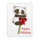 Panda adorable sur bambou avec grand arc rouge festif et texte "Joyeuses fêtes"
