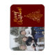 Joyeux Noël jaune doré en caractères de script avec un arbre de Noël abstrait doré posé sur un solide rouge profond dans ce design sophistiqué. Téléchargez votre propre photo de portrait vertical.
