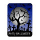 Illustration d'Halloween avec arbre, chauve-souris, hibou et gravestone décoration à pleine lune