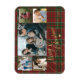 Elégant style Joyeux Noël faux or classique script de calligraphie cinq photos de famille rouge vert plaid aimant rustique tartan avec votre texte personnalisé.