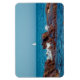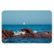 Une photo d'un voilier à l'horizon, et des vagues s'écrasant dans la formation rocheuse près du rivage. Copyright ©2018 Kimberly J Tilley.