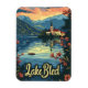 Une représentation sereine et nostalgique du lac Bled, en Slovénie, réputé pour sa beauté pittoresque et son atmosphère tranquille. L'architecture capture l'île emblématique de Bled avec sa charmante église, le château médiéval de Bled, perché sur une falaise, et les Alpes juliennes environnantes. Rendu dans un style vintage, l'oeuvre évoque le charme enchanteur et idyllique du lac Bled, invitant les visiteurs à découvrir ses paysages pittoresques et ses eaux paisibles.