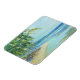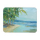 "Blue Coastal Lagoon" de Suzanne Wilkins. Il dispose d'une plage sereine avec des arbres tropicaux.