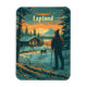 Une description sereine et nostalgique de la Laponie, Finlande, qui présente sa nature sauvage immaculée de l'Arctique, ses paysages enneigés et son patrimoine culturel unique. Le design comprend des troupeaux de rennes emblématiques de la région, des aurores boréales dansant dans le ciel nocturne et des cabanes en rondins confortables entourées de forêts enneigées, le tout illustré dans un style vintage. Cette oeuvre capture la beauté sereine et l'esprit aventurier de la Laponie, invitant les spectateurs à découvrir son atmosphère magique et ses merveilles arctiques.