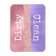 Lave-vaisselle filaire coloré aimant fait des graphiques d'une feuille rose et de feuille violette regarde avec une fausse parties scintillant rose entre eux. Le gros texte blanc dit "Dirty and Clean".