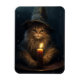 Un adorable chat dans le casquette d'une sorcière avec une bougie
