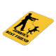 Ce qui arrive à tous les animaux de compagnie après une apocalypse zombie, eh bien ils suivent leurs maîtres zombies bien sûr. Amusant grand aimant fait en jaune, avec une silhouette noire d'un zombie conduisant son chien zombie sur une laisse. En bas, on peut lire le texte en noir gras du meilleur ami de Zombie. Personnalisez le texte pour lire ce que vous voulez.