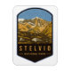 Un insigne de voyage vintage du Parc National du Stelvio avec Monte Cevedale couvrant les régions du Trentin-Haut Adige, Sudtirol et Lombardia dans le nord-est de l'Italie.
