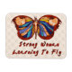 Célébrez la croissance de votre puissance émergente avec ce papillon multicolore avec le corps d'une femme au centre et les mots "Femme forte apprenant à voler."
