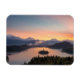 Magnet photo souvenir rectangulaire d'un lever de soleil coloré sur le lac Bled avec l'île au petit matin en Slovénie.