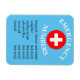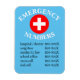 Cet aimant personnalisé comporte une liste utile de numéros de téléphone d'urgence. Une grande croix rouge et blanche est imprimée en haut. Une liste de noms et de numéros de téléphone est imprimée en bas sur un arrière - plan bleu clair.