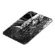 Une photo en noir et blanc d'un canard assis sur une rive d'une rivière qui regarde vers l'eau.