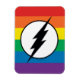 DC pride | the Flash's iconic logo with layers of rainbow colors inside it.