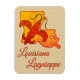 Ajout parfait à votre boutique ou à votre maison. Dans des oranges vives, des rouges et des jaunes avec une langouste en retrait par l'état de Louisiane. Peut être commandé en vrac pour des prix réduits.