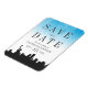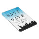 Un ensemble personnalisé d'enregistrement des timbres de date pour déménager à New York avec un ensemble personnalisé d'Magnet Réservez la date adapté au mariage de New York.