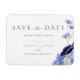 Réservez la date avec élégance grâce à une aquarelle unique de fleurs sauvages peintes à la main et une belle typographie script facile à personnaliser avec les noms des mariés et la date du mariage. Carte "save the date" moderne pour un mariage bohème floral d'été. Fleurs uniques de prairie, notamment des bleuets, des coquelicots, des cosmos et des myosotis avec un feuillage délicat peints par l'artiste Catherine Sweetman dans des tons de bleu bleuet, de bleu tendre, de bleu marine, de pourpre et de vert. Idéal pour un mariage dans un jardin botanique ou en plein air au printemps ou en été dans une prairie. Trouvez des articles assortis dans la collection moderne de mariage aux fleurs sauvages bleues.