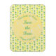 Cet impressionnant savourez l'aimant mariage date dispose d'un motif de fruits tropicaux à l'ananas jaune avec des toits verts et de jolis feuilles de palmiers vert pâle. Idéal pour un Mariage à thème estival ou tropical. Il y a un cercle jaune avec des motifs blancs marbrés qui contient du texte personnalisable pour vous permettre de personnaliser cette conception.