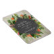 Un mariage sauvez l'aimant de date avec un design botanique tropical avec un design géométrique en damier sur un arrière - plan en brique blanche.