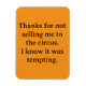 Merci de ne pas m'avoir vendu au cirque. Je sais que c'était une carte tentante