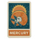 A retro illustration of Mercury with a satellite.