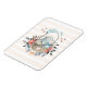 Un aimant avec pêche et motif rayé blanc. Illustration numérique à base d'aquarelles. Un charmant lapin lapin portant une robe bleue assis dans un panier entouré de ses oeufs. Des papillons flottent autour de la corbeille décorée d'un bouquet de fleurs soigné.
