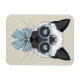 Ce design présente un chat siamois habillé d'une paire de lunettes bleues et d'une cravate arc à damiers.