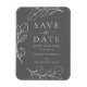 Belle simple eucalyptus feuilles sprig mariage gris enregistrer l'invitation de date. Un design épuré et élégant dessin d'art à la ligne avec un arrière - plan gris, script de typographie blanc et élégant. Un artiste unique a créé un mariage personnalisé enregistrer l'aimant de date pour rappeler aux amis et à la famille de garder la date libre. Un design feuillu minimaliste et élégant, facile à personnaliser à l'aide d'un modèle simple. OEuvre originale de l'artiste Catherine Sweetman