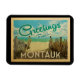 Ce design de carte postale vintage de Greutings From Montauk dispose d'une plage de sable avec une belle eau turquoise de l'océan et au-dessus de la mer, un ciel bleu avec des nuages blancs lustrés. Dans un style de voyage vintage.