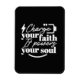 Bold typography artwork featuring the phrase “Charge your faith, it powers your soul”. A powerful reminder of spiritual strength and encouragement. Perfect gift idea for church, youth groups, and faith-based events.