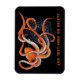 Une pieuvre orange sur fond de noir. Tentes d'octopus dans et autour des bulles et mandala bleu