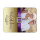 Or 50e Anniversaire du Mariage avec le pourpre. Cet aimant NE vient pas avec des ornements. Tout ce que vous voyez est imprimé sur une surface plane faite pour ressembler à la 3D. Voulez-vous un ruban couleur différent ou aider à la conception de votre invitation? Conception par Elke Clarke© pour Monogram Gallery. Carte graphique sous licence.
