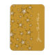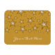 Design moderne avec "brillant" or et étoiles blanches sur un arrière - plan jaune foncé. Aimant frigo avec un design personnalisable pour vous de personnaliser avec votre propre texte, images et idées. Veuillez noter qu'il s'agit d'une image imprimée créée à l'aide de photographies originales et de techniques numériques, elle ne brille pas ou ne contient pas de vrais étincelles.