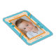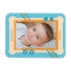 Aimant photo cadeau maman. Orange et bleu, avec des fleurs, aimer les coeurs et rayures. Maman, je t'aime