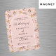 Un cadre en arc sur un motif de pampas herbe et fleurs roses et une croix dorée. Personnalisez et ajoutez vos noms et détails.