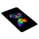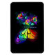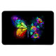 Arc en ciel, papillon monarque lumineux, artistiquement peint avec bouquet de roses irisés, lumineux, lumineux sur arrière - plan noir. Papillon arc-en-ciel.