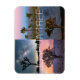 Joshua Tree National Park Sunset Night Landscape Magnet : un aimant réalisé avec quatre photos prises à Joshua Tree, Californie. Avec une photo de galaxie de la Voie Lactée, une piste étoile nocturne montrant la rotation de la Terre autour de l'Étoile Nord, un coucher de soleil, et une photo de lever du soleil prise pendant l'heure bleue, avec des montagnes enneigées derrière les arbres Josué, voici la carte postale parfaite pour les amateurs du Parc National Josué Tree !