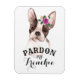 Cet aimant flexible a une mignonne Aquarelle brune et blanche French Bulldog avec un petit bouquet de violet, pêche, et vert fleurs d'aquarelle et feuilles assis sur son front. Le texte personnalisable dit "Pardon my Frenchie".
