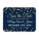 Elégant mariage "Save The Date" design avec Gold Faux Parties scintillant Confetti Marine Blue et noms personnalisés et texte de date.
