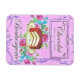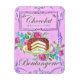 Une pâtisserie vintage avec un gâteau au chocolat et des fleurs. Dans les couleurs du rose et du violet.