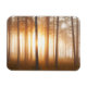 Cette photo présente une pinède dans la brume au lever du soleil à Dorset, Angleterre.