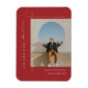 Mise en page moderne, aimant de photo de remise de diplôme en rouge.