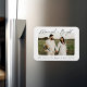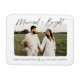 Célébrez votre premier Noël en tant que couple marié avec notre aimant photo de vacances Mariés et Radieux ! L'aimant présente "Mariés et Radieux" dans un script manuscrit noir. Votre photo de mariage horizontale est affichée avec une bordure blanche à bord rugueux. Personnalisez l'aimant en ajoutant un message personnalisé avec vos noms indiqués ci-dessous.