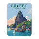 Capturez le paysage idyllique de Phuket avec cet aimant d'illustration de voyage avec un bateau traditionnel sur ses belles plages. Ce souvenir thaïlandais classique évoque le charme tropical de cette destination insulaire populaire. Parfait pour les amateurs de plage et les collectionneurs de souvenirs de voyage en Thaïlande.
