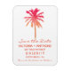 Ces Magnet Réservez la date sont parfaits pour tout couple qui planifie une célébration romantique de mariage sur la plage. Le design se compose d'un palmier d'aquarelle tropicale dans les tons rose corail chaud, rouge et orange sur un arrière - plan blanc propre avec une formulation modifiable coordonnée couleur. Le design simple peut être personnalisé pour convenir à votre événement spécial et sera le faire-part parfait pour toute soirée tropicale à thème, y compris : douches nuptiales, fiançailles, wedding showers, fêtes d'anniversaire et bien plus encore.