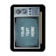 Photograph of a 1980's portable television with static screen. Customizable text and background color. Image copyright 2014 by Margaret E. Cmelik.