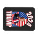 Le président Trump Magnet. Le président Trump se tient face au drapeau américain. Les lettres et les chiffres sont indiqués en rouge.